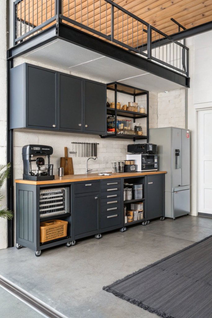 Under-counter systems maximize vertical space by installing beneath existing countertops. This mini kitchen style works brilliantly in basements, garages, or workshop areas where you need occasional cooking capability.