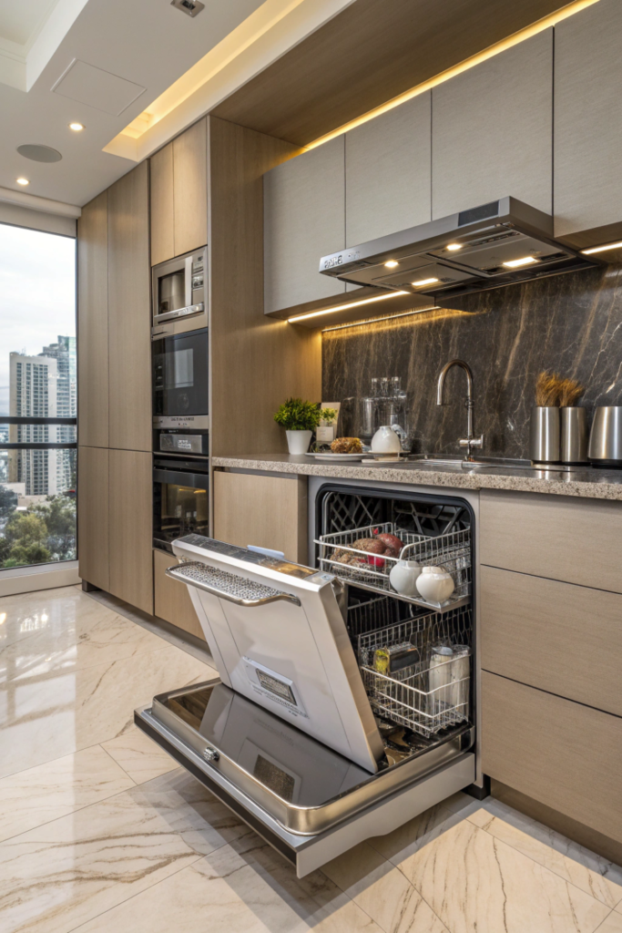 6. Mini Kitchen with Built-In Dishwasher