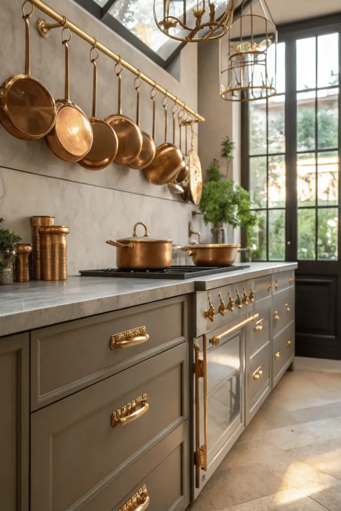 Metallic accents can add subtle warmth and elegance to winter kitchen decor. Choose finishes like brushed brass, copper, or antique gold rather than shiny chrome.