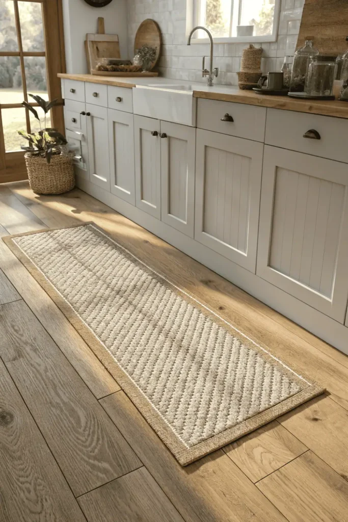 Cold floors can make a kitchen feel uninviting in winter. Adding a rug or runner instantly warms the space and adds visual comfort. Choose low-pile or washable rugs designed for kitchens to ensure practicality.