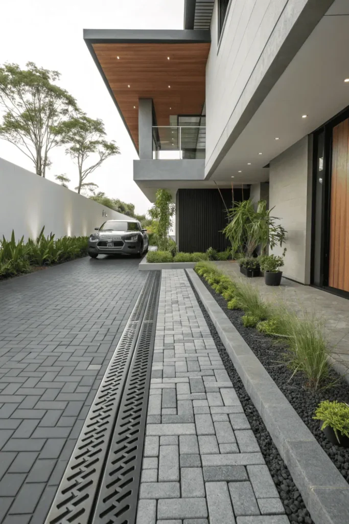 9. Interlocking Concrete Pavers with Drainage Channels