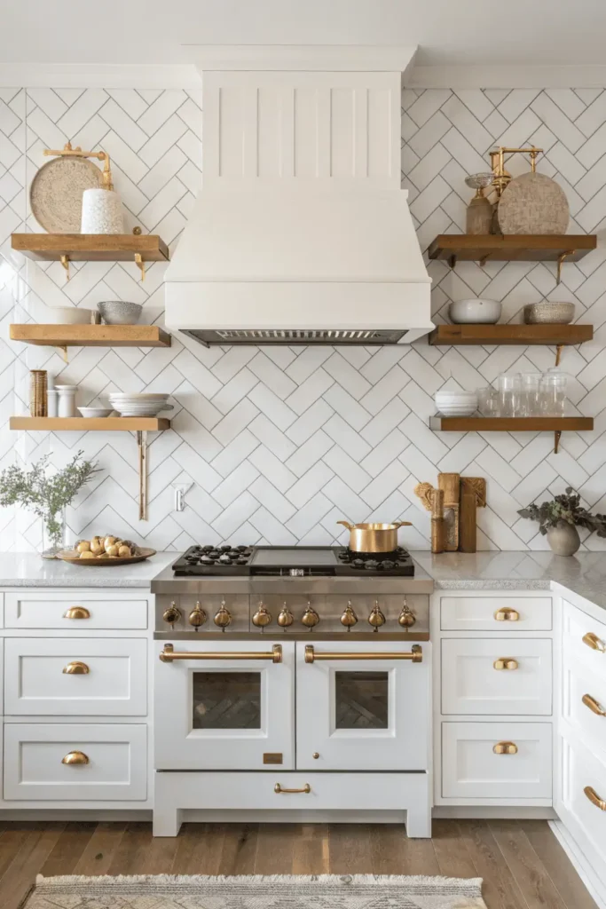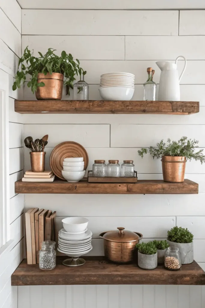 Floating shelves add character to your dream kitchen by displaying beautiful dishes, cookbooks, and decorative items while keeping essentials within reach. Open shelving creates visual breathing room and makes spaces feel larger.