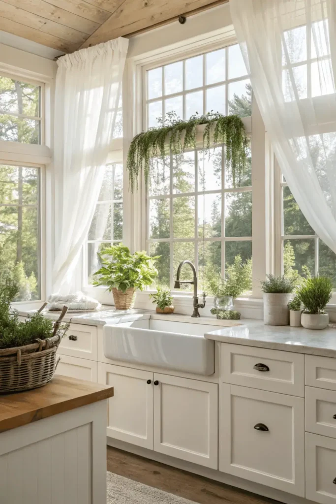 Position windows above sinks or along main walls to maximize light penetration. Energy-efficient windows with Low-E coatings prevent heat loss in winter and heat gain in summer.