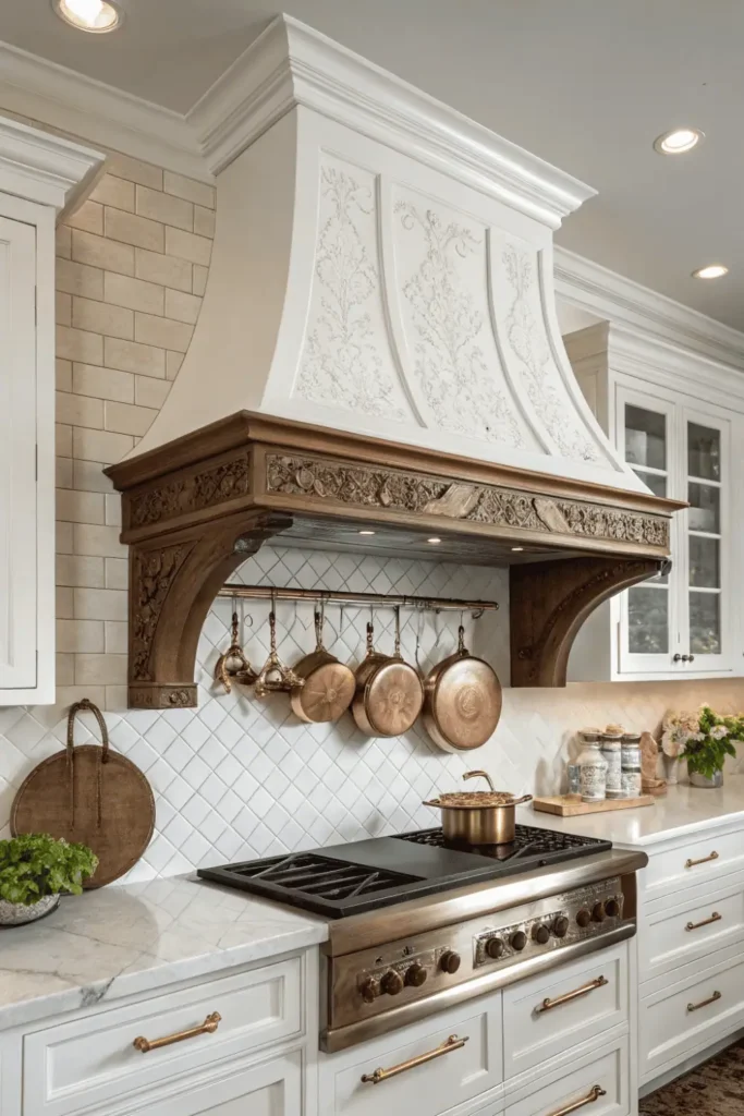 Stainless steel, custom wood, or decorative plaster hoods complement different design styles from industrial to Mediterranean. Proper ventilation requires hoods that vent outside rather than recirculating air.