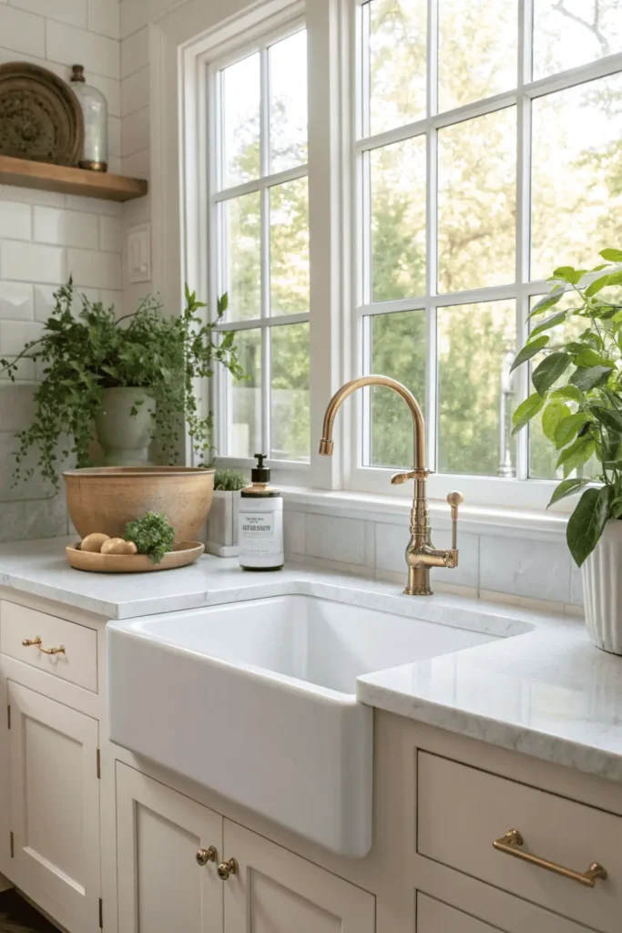 Pro Tip: Pair your farmhouse sink with a high-arc faucet featuring a pull-down sprayer for maximum functionality and easier cleaning of tall items.