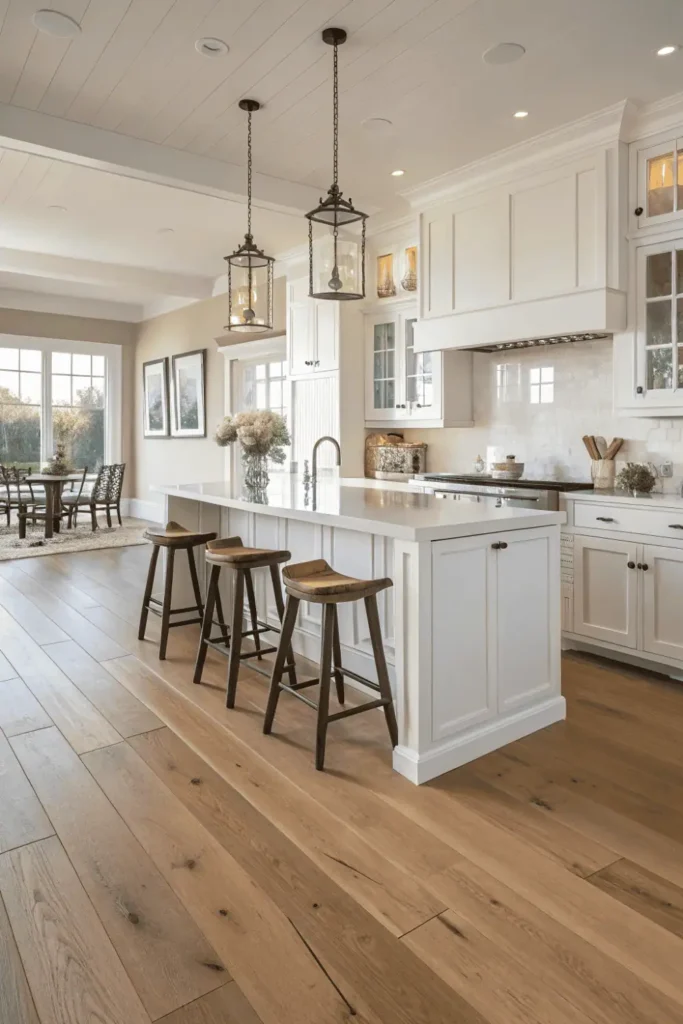 Quality flooring grounds your dream kitchen design while withstanding heavy traffic, spills, and daily wear. Engineered hardwood offers authentic wood beauty with enhanced moisture resistance compared to solid hardwood.