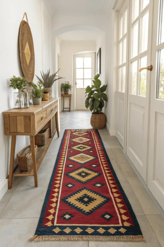 Pro Tip: Use smaller kilim pieces as wall hangings or draped over furniture to add color and texture without committing to a large floor rug.