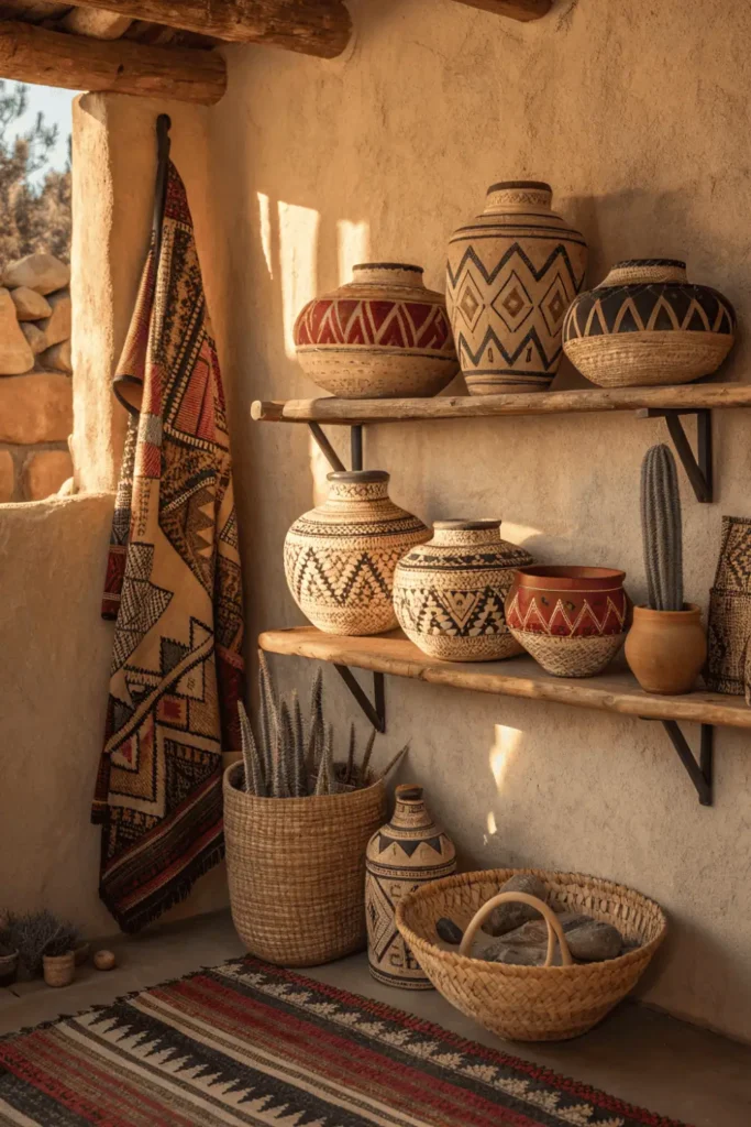 Native American baskets represent centuries-old weaving traditions using natural materials like sweetgrass, willow, and pine needles. These functional art pieces add authentic ethnic home decor through geometric patterns with tribal significance.