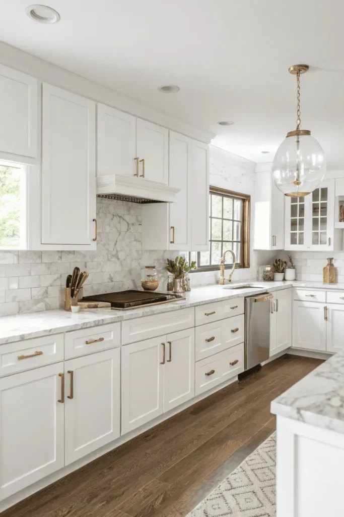Quartz countertops combine engineered durability with natural stone aesthetics, making them ideal for busy kitchens. Unlike natural stone, quartz never requires sealing and resists stains, scratches, and bacteria growth exceptionally well.