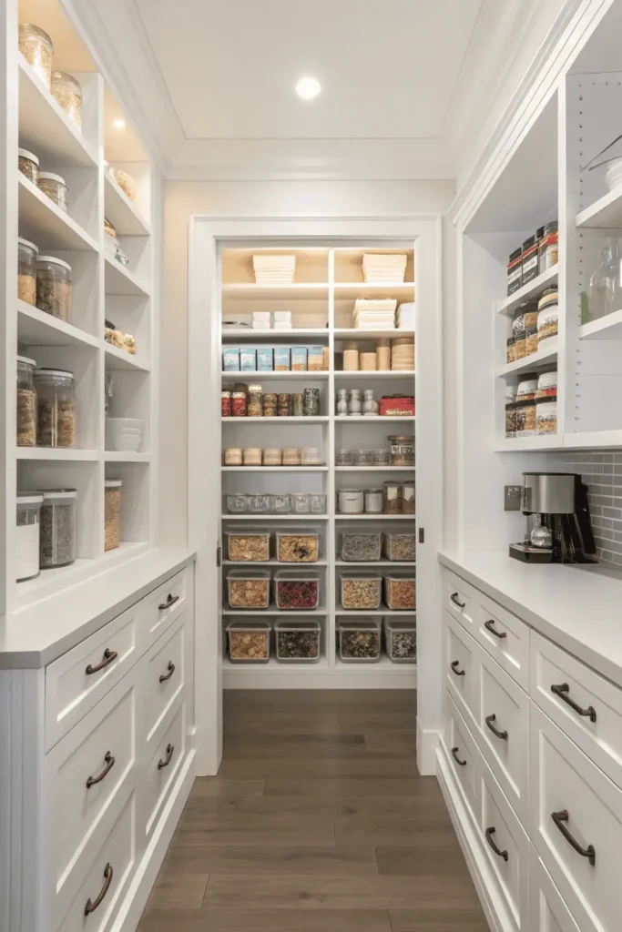 Pro Tip: Include outlets in your pantry for storing small appliances like coffee makers, toasters, or stand mixers off the main counter.