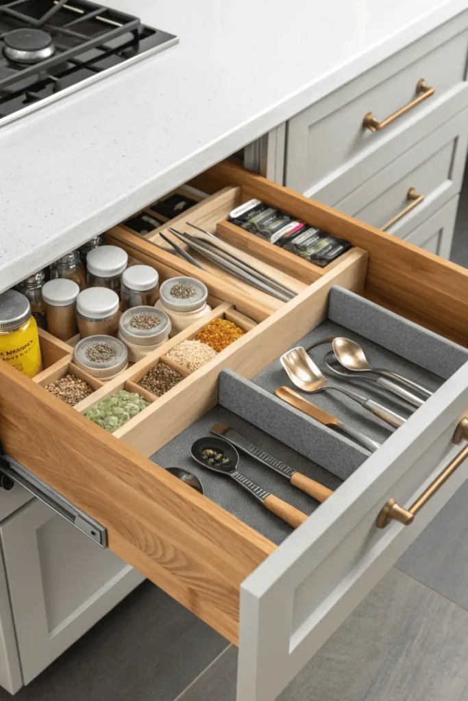 Budget $100-$500 per custom organizer feature, with typical kitchens benefiting from 5-10 specialized storage solutions. Well-organized kitchens function better and maintain their tidiness more easily than those with standard shelving alone.