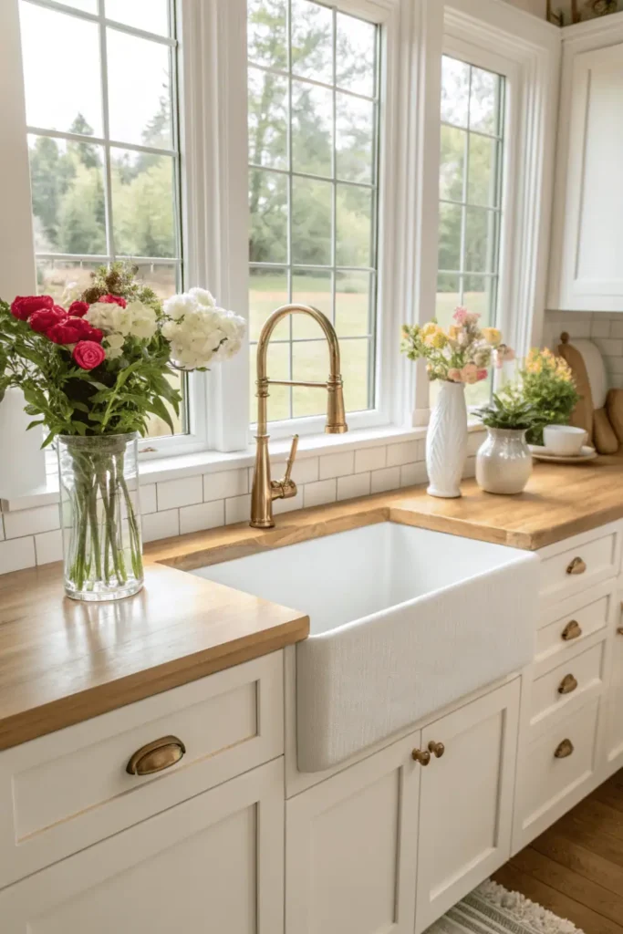 A farmhouse sink (also called apron-front sink) makes a bold statement in any kitchen remodel while offering practical advantages. The exposed front panel adds architectural interest, and the deep basin accommodates large pots and baking sheets effortlessly.