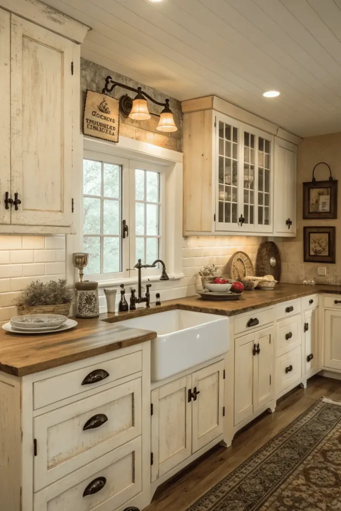 Pro Tip: Request cabinet samples showing the exact distressing technique before ordering—distressing varies dramatically between manufacturers, and you want to ensure the finish matches your vision.