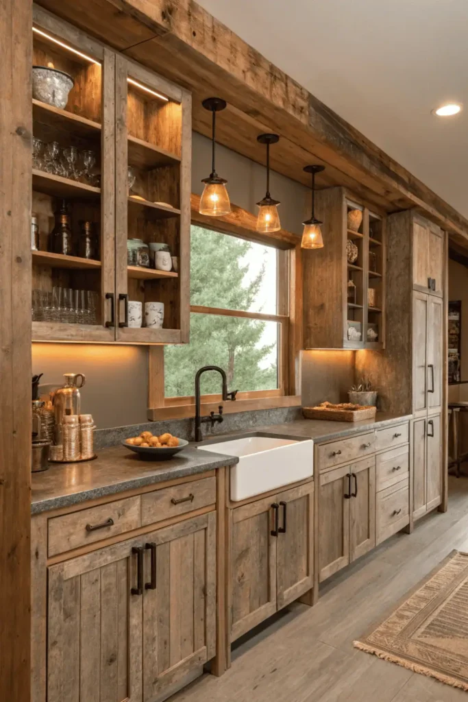 3. Rustic Reclaimed Wood Cabinets