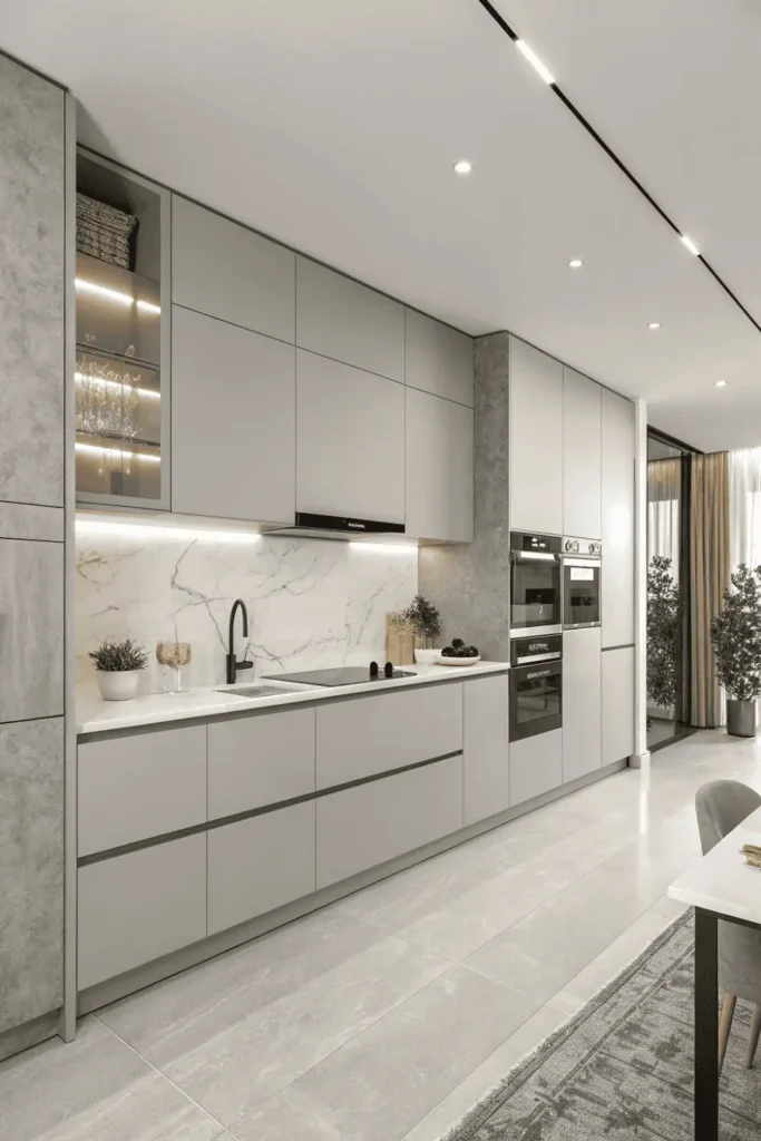 The seamless surfaces reflect light beautifully, making small kitchens feel more spacious and open. High-gloss finishes enhance this effect while matte finishes offer sophisticated subtlety.