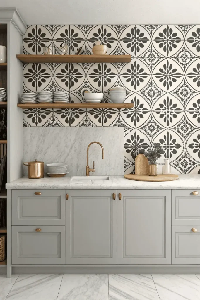 Pro Tip: Mix patterned encaustic tiles with solid neutral tiles to balance visual weight—using patterned tiles for the entire backsplash can overwhelm small kitchens, but strategic placement creates stunning focal points.