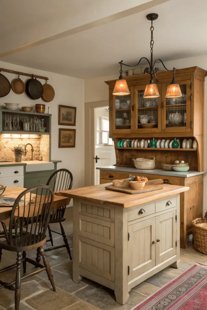 Pro Tip: Balance freestanding furniture with built-in cabinetry—use one or two statement pieces like a vintage hutch or antique island rather than replacing all built-ins, which maintains functionality while adding cozy character.