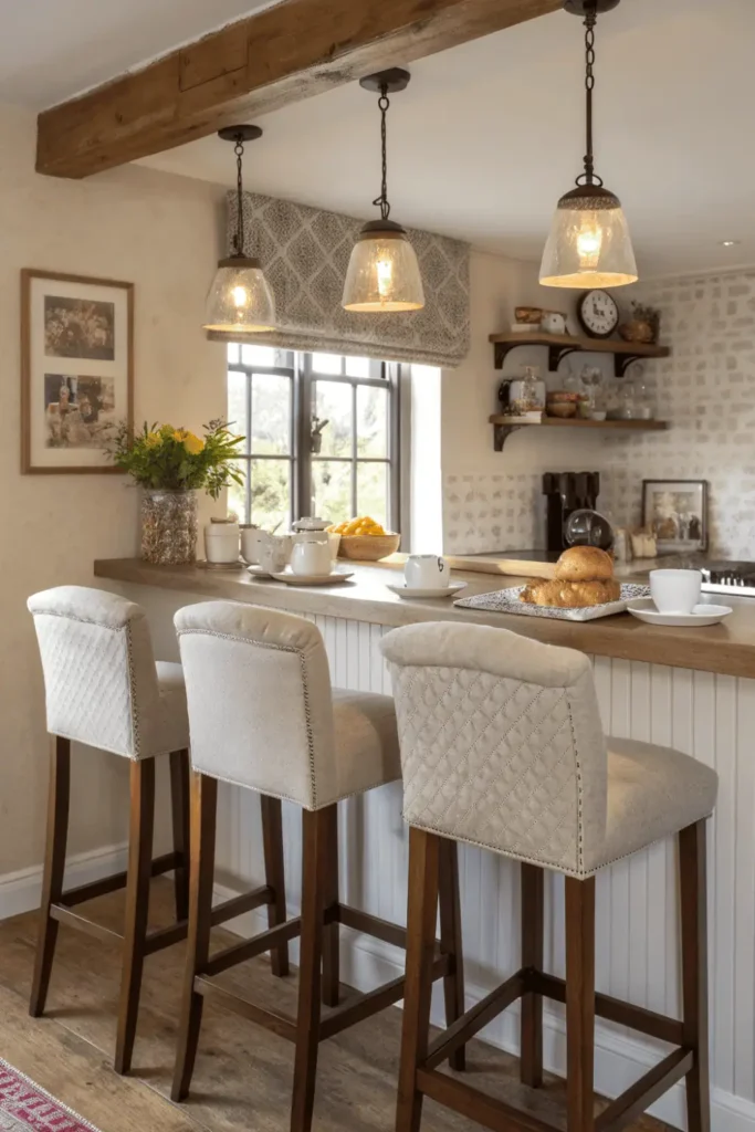 Pro Tip: Install small LED puck lights inside glass-front cabinets to illuminate displays and create ambient evening lighting that enhances the cozy atmosphere—this detail makes the kitchen feel like a warm, inviting showpiece.