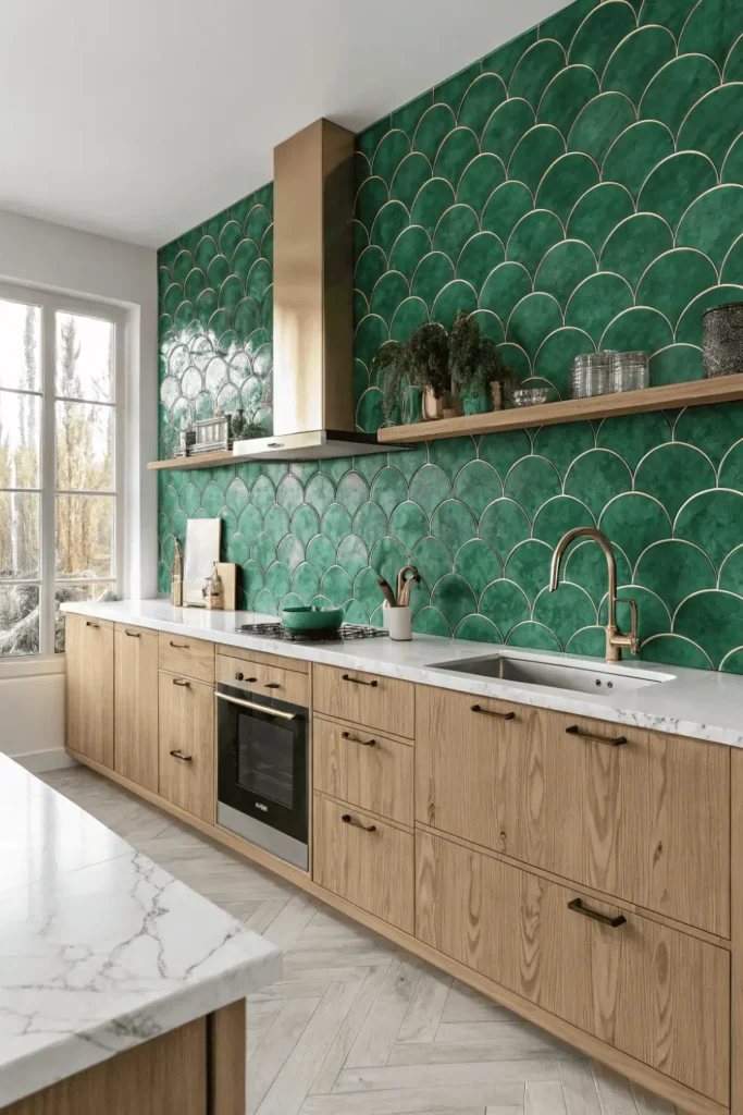 Moroccan-inspired patterns, subway tiles with beveled edges, and artisan concrete tiles move beyond flat surfaces. The visual and physical texture transforms backsplashes from functional elements into focal points.