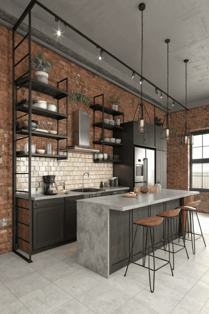 Visible ductwork, open shelving, and exposed brick characterize industrial-inspired latest kitchen designs. Stainless steel surfaces, concrete countertops, and metal accents create urban loft aesthetics in any home.