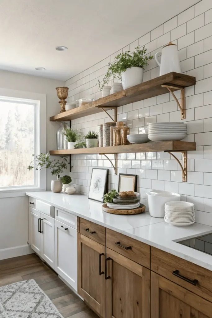 Pro Tip: Use open shelving for items you use daily and keep less attractive necessities in closed lower cabinets to maintain a clean, styled appearance.
