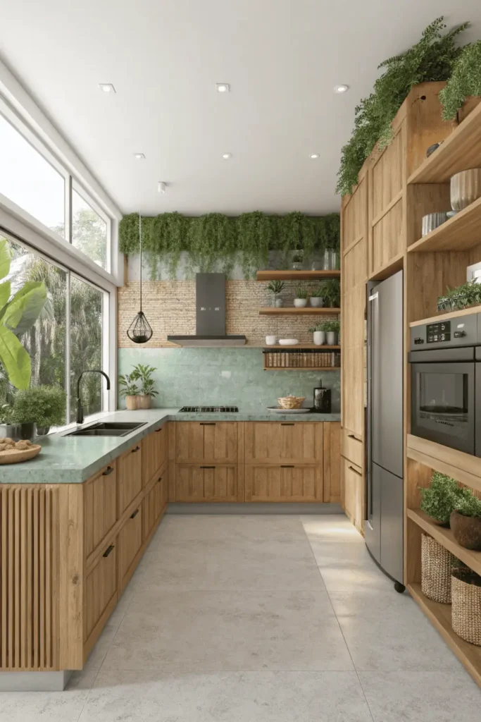 Sustainable hardwoods and reclaimed timber feature prominently in eco-conscious latest kitchen designs. Live-edge countertops and raw wood shelving celebrate imperfections and natural beauty.