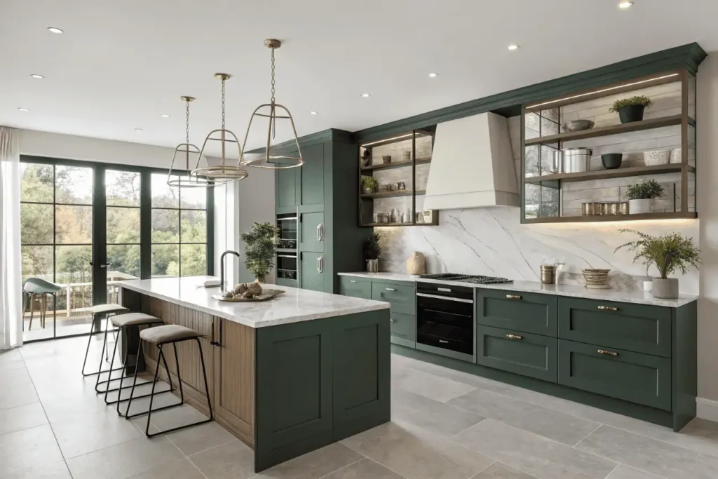 Cork flooring, recycled metal tiles, and FSC-certified wood prove sustainable choices don’t sacrifice style. The eco-friendly movement in latest kitchen designs combines ethical sourcing with cutting-edge aesthetics.