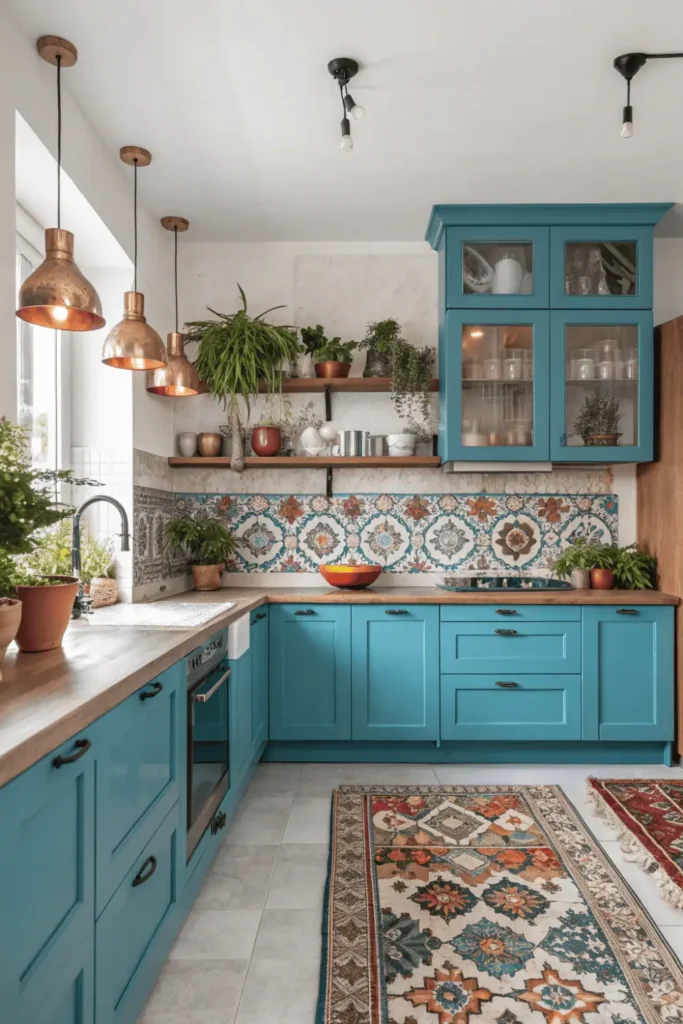 15. Turquoise Blue Cabinets for Bohemian Flair