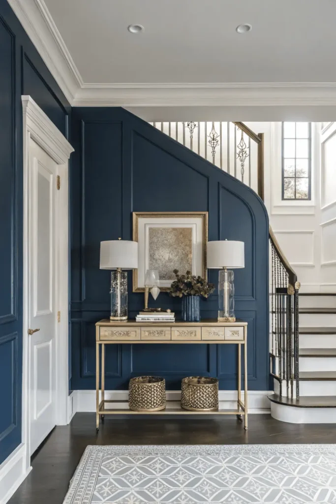 Pro Tip: In small entryways, use wallpaper or dark paint on just one wall (typically the wall you first see when entering) to add drama without making the space feel closed in.