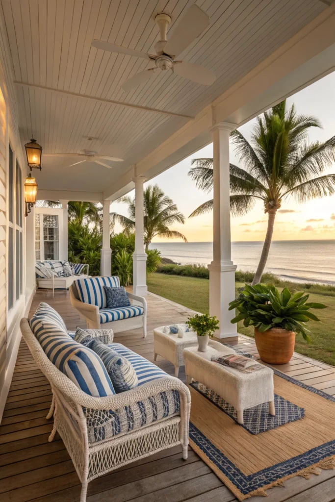 Create seamless transitions with covered porches, outdoor living rooms, and al fresco dining areas that function as extensions of interior spaces. This essential beach house decor concept maximizes your coastal location by creating multiple gathering spots that embrace ocean breezes.