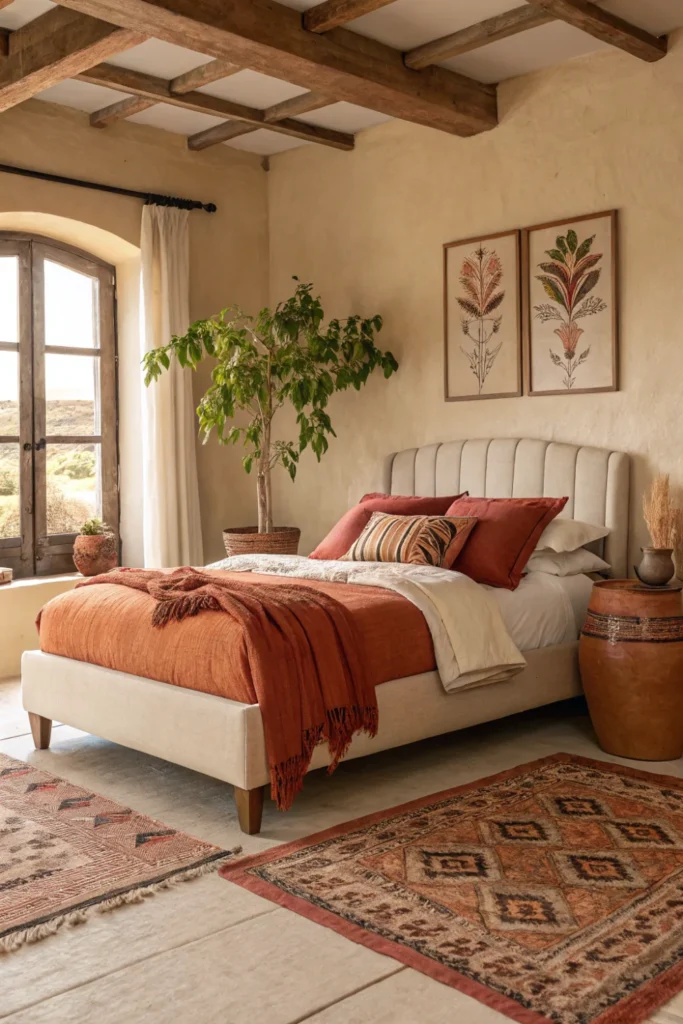 11 Cream Bed Frame with Terracotta and Earthy Tones