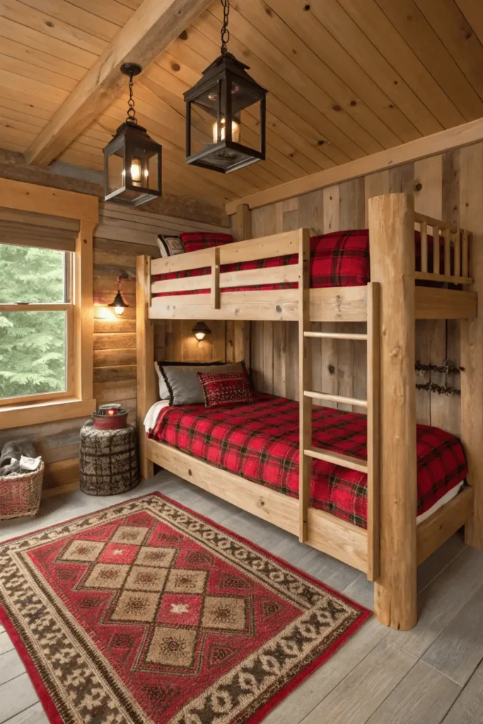 4. Rustic Wooden Cabin-Style Bunks
