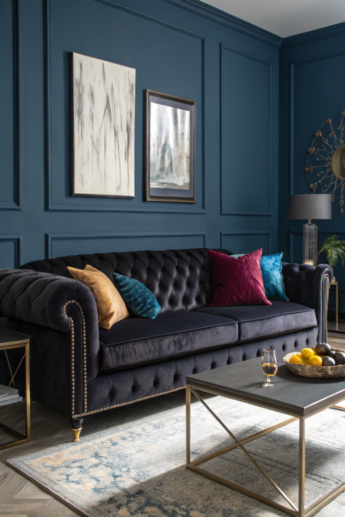 Black velvet sofas and chairs instantly elevate the tactile experience of your space while absorbing light in ways that create dramatic shadows. The plush texture adds a layer of sensory richness that synthetic fabrics can’t match.