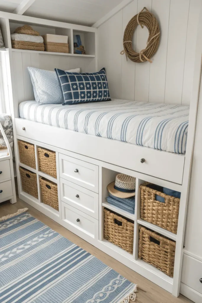 11. Captain’s Bed with Built-In Side Storage Cubbies