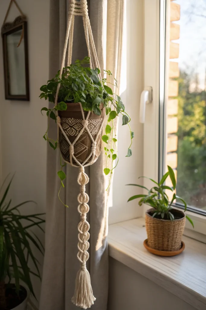 | Plant Hangers | Beginner | $ | Low – 1-2 hours | High – cord durable | Bohemian, 70s, natural |