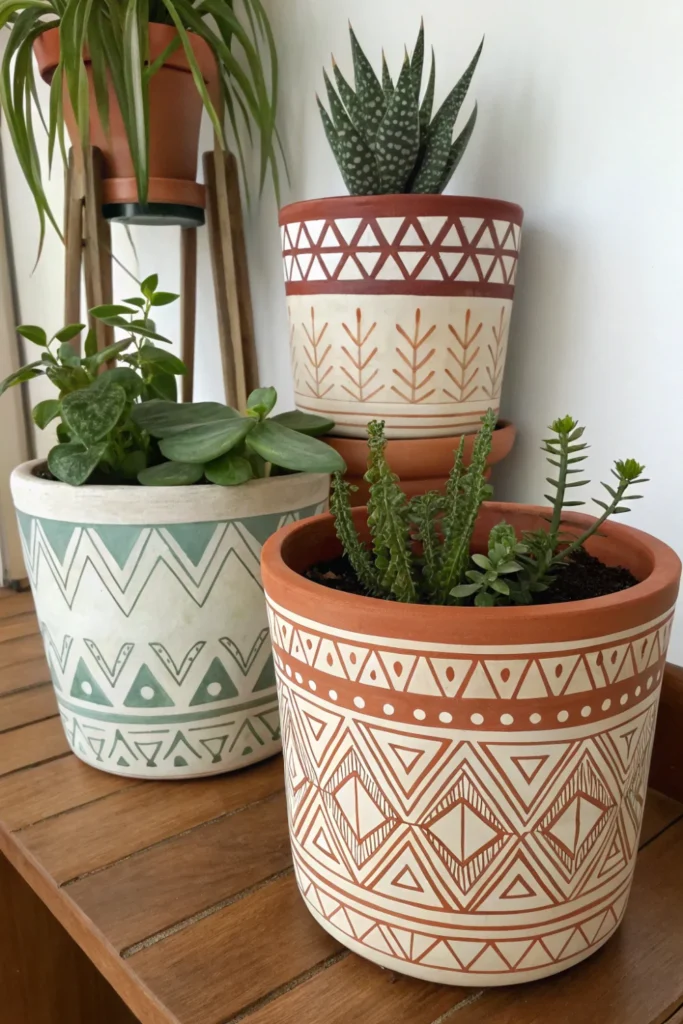 Decorated clay pots using paint, stencils, or decoupage transform basic planters into custom handmade home decor. The affordable upgrade personalizes functional containers beautifully.