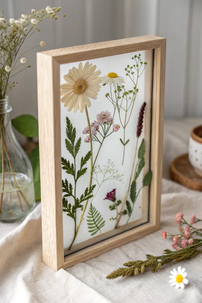 | Pressed Flowers | Beginner | $ | Low – passive pressing | Medium – fragile glass | Vintage, cottage, natural |