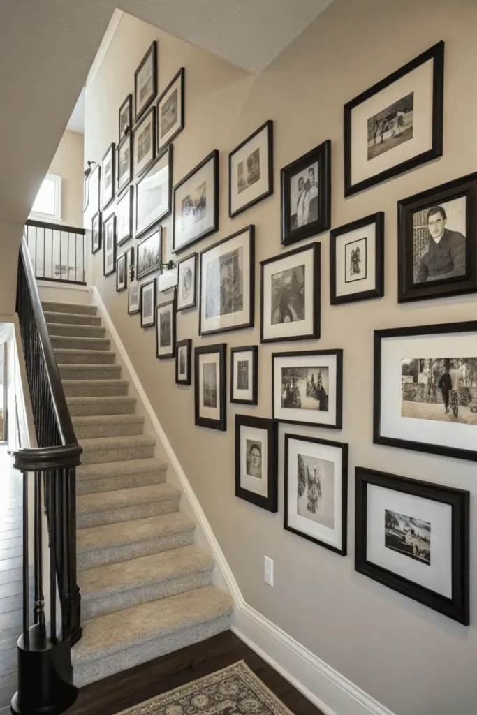Update seasonally with new photos from recent events. The evolving display documents family life and keeps walls feeling current.