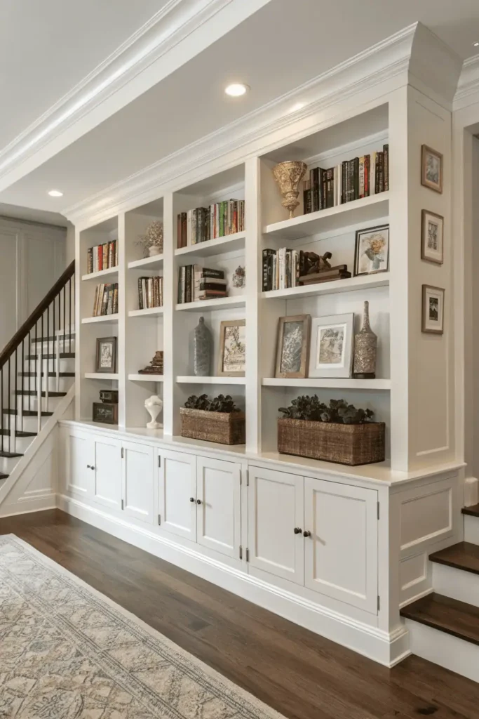Pro Tip: Extend shelving units to ceiling height in your home wall decor to maximize storage capacity and create impressive custom built-in appearances that make rooms feel taller and more architecturally significant.