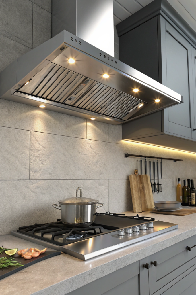 The functional requirement becomes design opportunity through attractive hood choices. The necessary feature enhances safety and cooking precision.