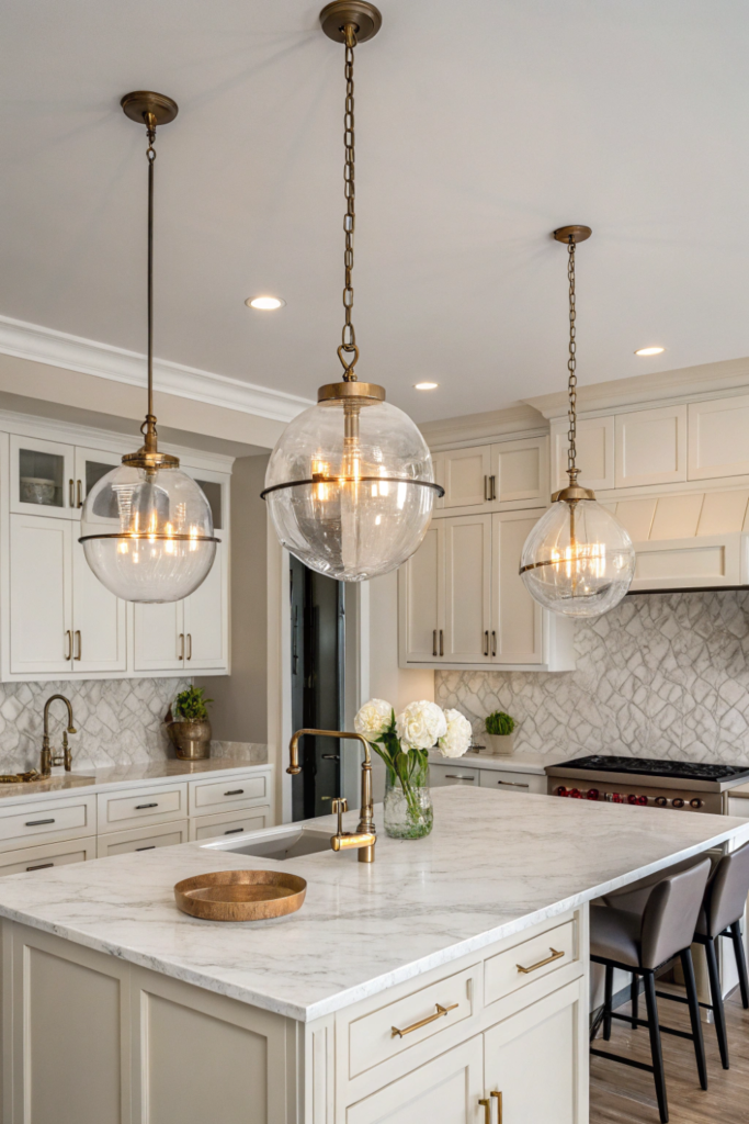 Coordinate pendant styles with overall kitchen aesthetics—industrial, farmhouse, modern, or traditional. The jewelry-like fixtures become design statements.