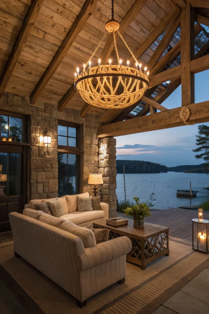 Choose rustic chandeliers, driftwood pendant lights, and antler fixtures that bring organic elements into your lake house decor lighting scheme. These statement pieces add character while providing necessary illumination for different activities and moods.