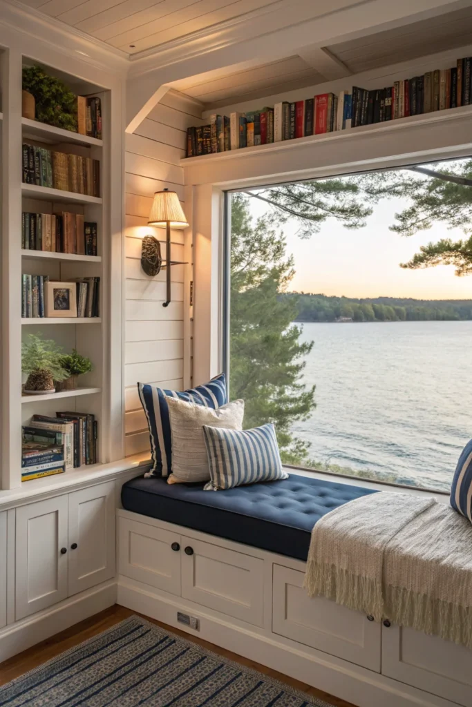 Pro Tip: Position reading nooks to capture morning light for early risers or sunset views for evening readers, making the most of your specific lakefront orientation.