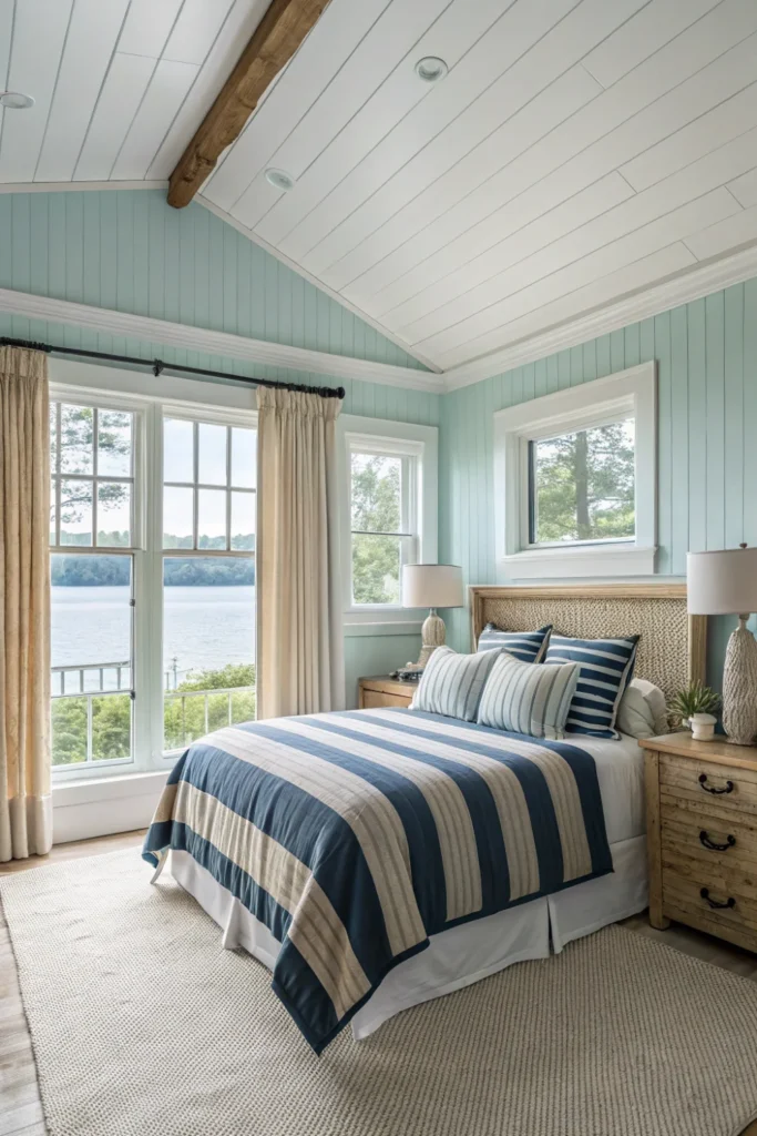 Pro Tip: Take photos of your lake at different times of day and in various seasons, then use those exact colors as inspiration for your paint and fabric selections.
