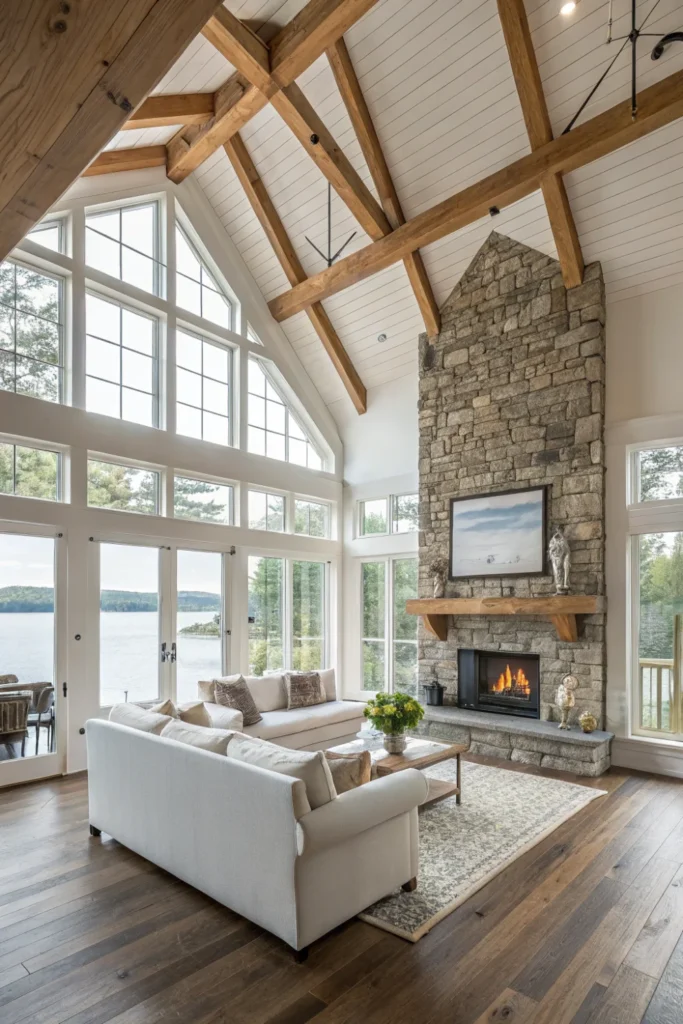 Pro Tip: If your lake house lacks authentic beams, add faux beams made from lightweight polyurethane—they’re affordable, easy to install, and virtually indistinguishable from the real thing.