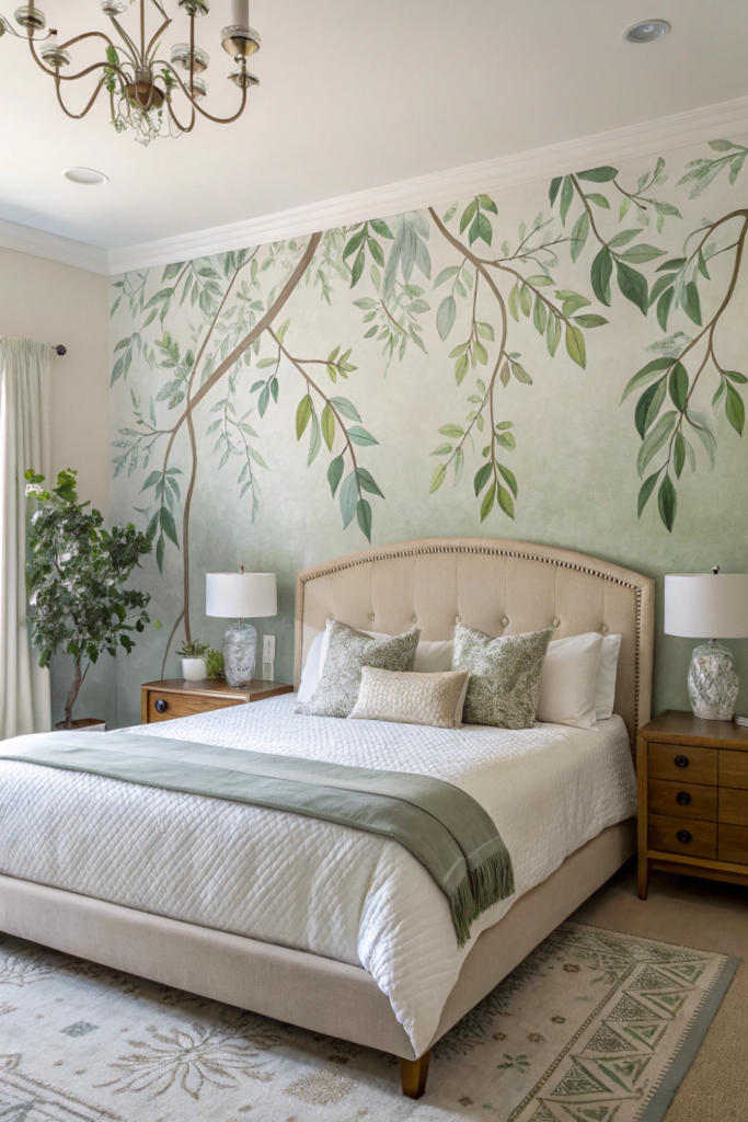 Botanical murals, abstract designs, or landscape scenes set moods through imagery. Professional artists or quality decals deliver varying price points and permanence levels.