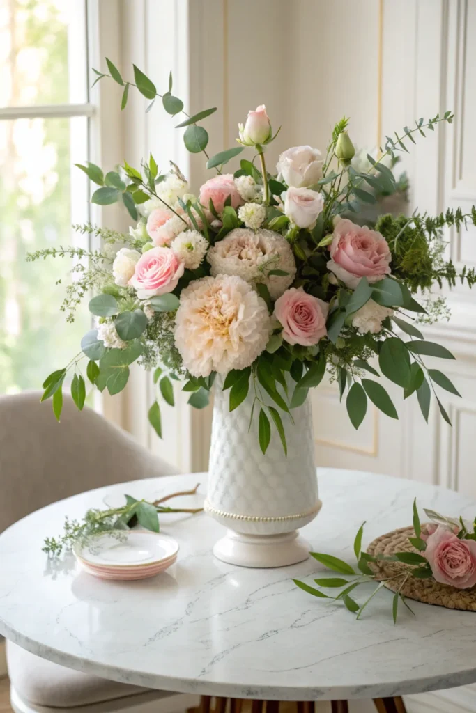 A lush, hand-arranged bouquet of her favourite flowers in a beautiful vase is the most classic and emotionally resonant of all Mother’s Day home decoration ideas — nothing makes a room feel more celebrated and alive.