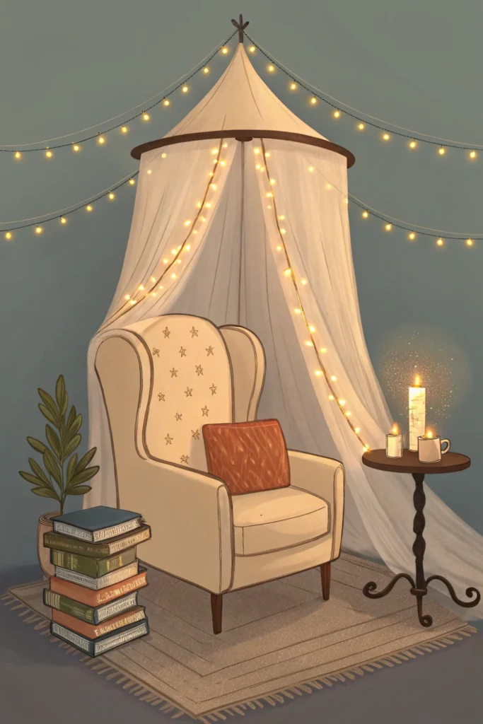 10 Fairy Light Canopy Above Her Reading Nook