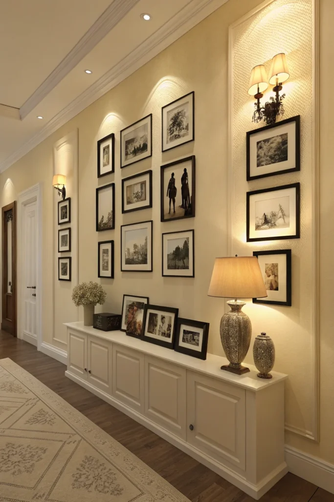 A curated gallery wall of family photos, travel memories, and personal milestones is one of the most heartfelt Mother’s Day home decoration ideas — every time she walks past it, she sees the story of her life reflected back at her.