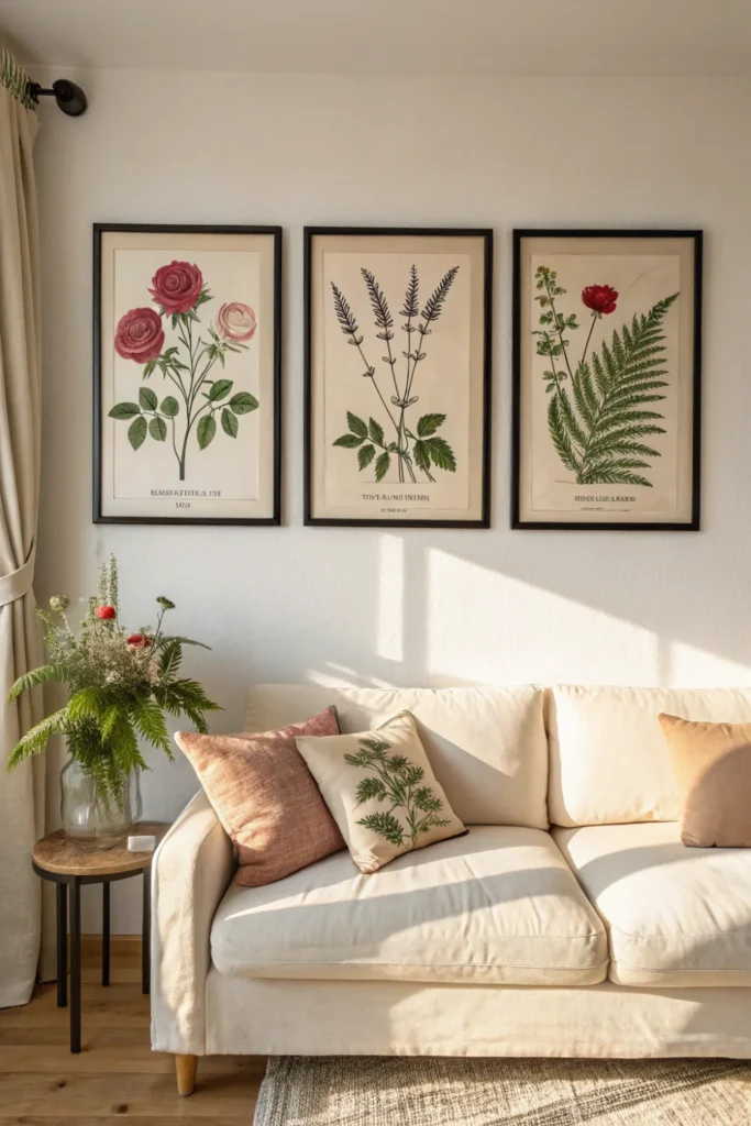 Framed botanical prints — vintage-style illustrations of flowers, herbs, and plants — bring a refined, timeless quality to any room and are among the most universally loved Mother’s Day home decoration ideas.